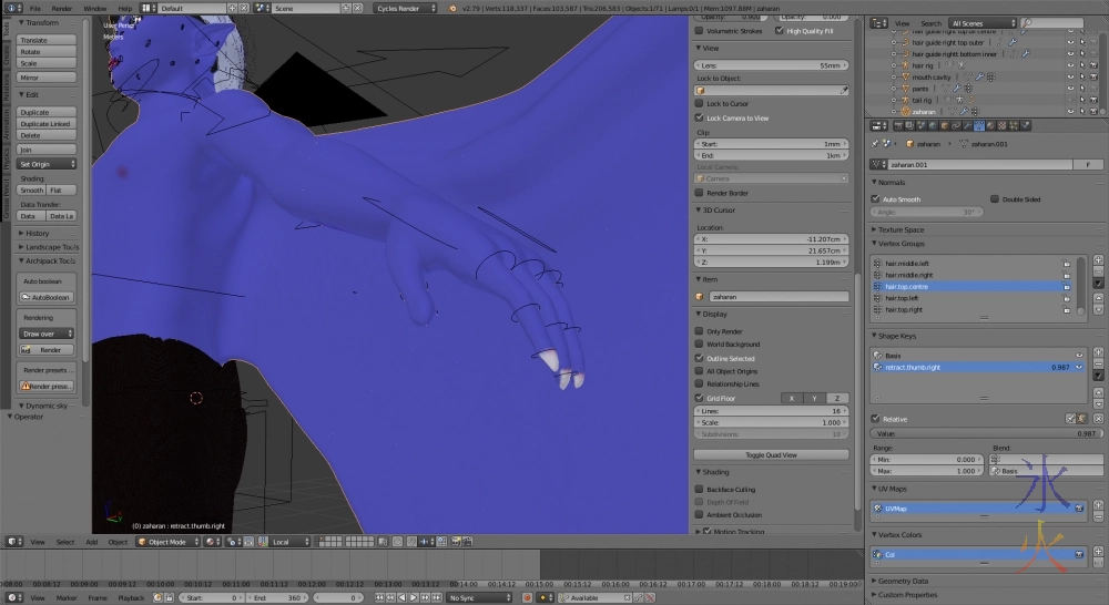 On the technical front, I’m doing the claw retractions as shape keys. Not bothering with bone drivers unless I get really annoyed while animating, which could happen at a later stage though currently I don’t foresee that being a problem as there are three scenes in the entire series that I can immediately call to mind in the entire series where I specifically mentioned claw extensions for whatever reason.