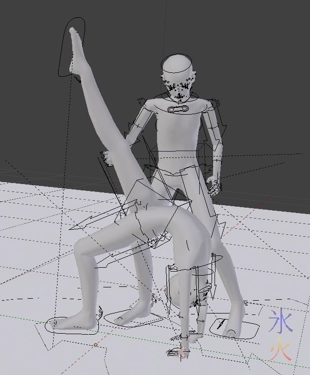 I’m still doing large keyframe blocking so most things look really rough (I only did small movements for anything that required rolling) and there’s some eldritch deformations happening as a lot of controllers are doing shortest path. I posted a video for Patreons which is paywalled (because one of the perks is me showing more wips than I’m usually comfortable with showing XP). I don’t think I need to do a timing render as the scene is so basic and the characters so low poly that the playback is running in real time but may do anyway just to make sure everything’s cool.