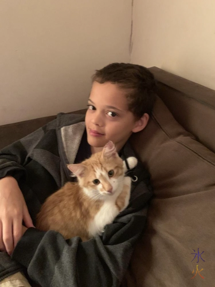 We’re not sure how old he is but he still had kitten teeth when we got him (it’s all adult teeth now as far as I can tell, so time for needles and castration and other such fun stuff, poor thing XD). A friend’s friend had found him somewhere wandering and passed him onto my friend who used to work in rescue and she was wondering which rescue to put him with and then remembered we’d been looking for cats and thus we got him. 14yo and kitten were introduced before we left and 14yo was instantly smitten. My friend continued fostering the kitten until we returned. He’s been pretty amazing at fast levelling 14yo’s sense of responsibility, which had already developed in leaps when he had decided to try to look for a job when we got back.