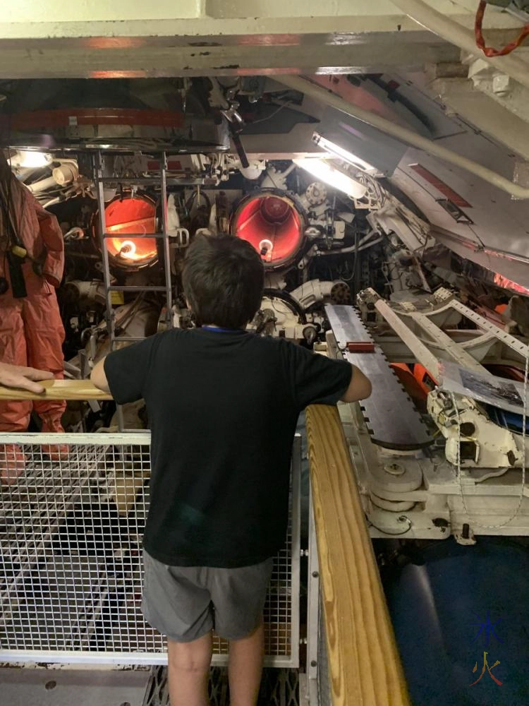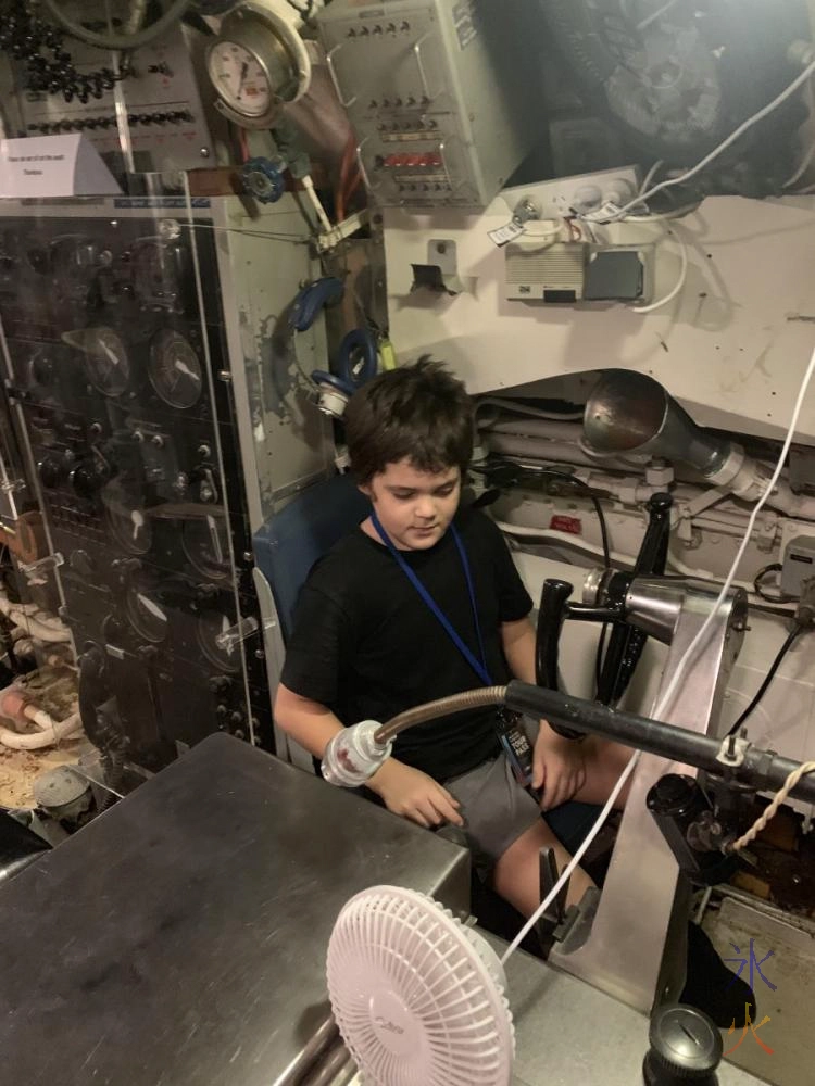 In the middle part of the submarine the boys got to sit in the driver’s seat and everything in the control room explained to them including the different types of periscope (who knew there were different types of periscopes!).