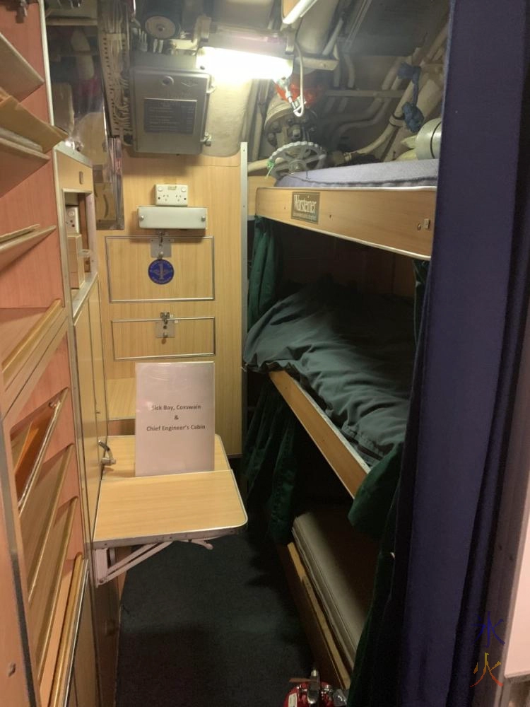 The entrance and exit were modified to make it easier for tourists to clambre in and out without killing themselves. The entry was the torpedo room at the front of the submarine (apparently there used to be one at the back of the sub too but that room got refurbished into a schoolroom for newer recruits when torpedoes became advanced enough to guide and thus could be fired out the front and then be turned to go behind the sub instead of ahead of it),