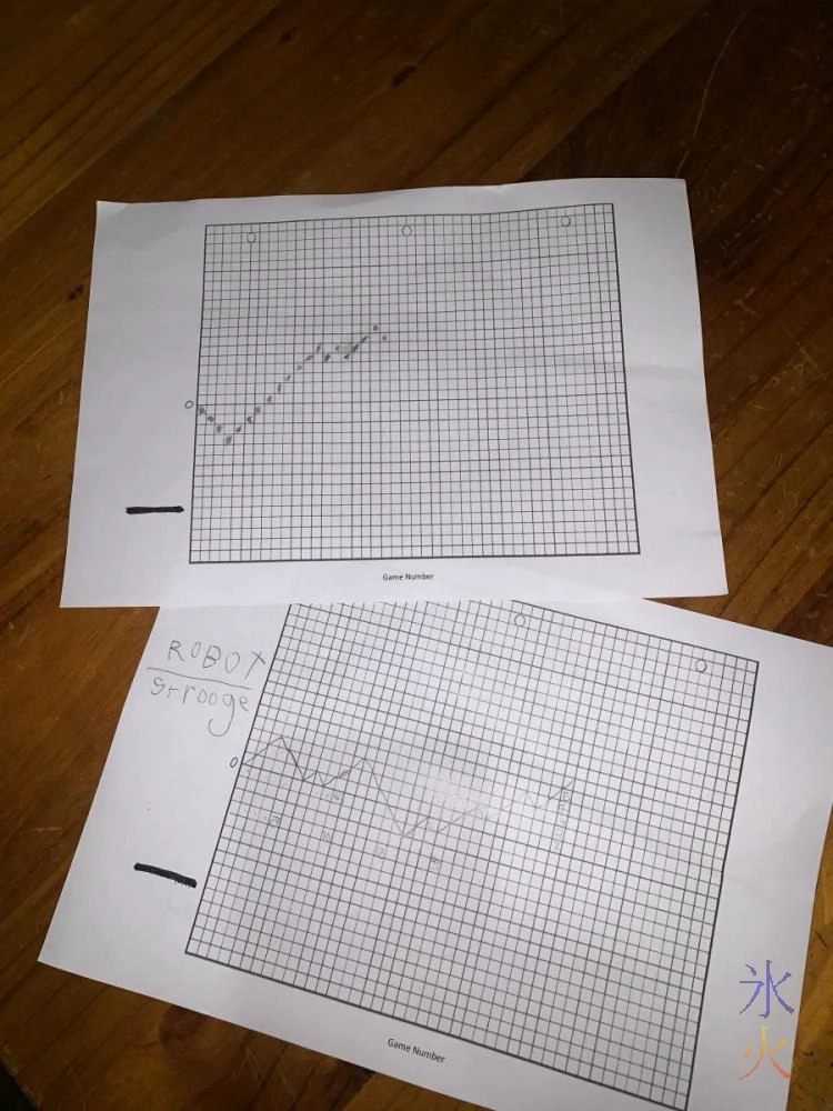 One of the last two lessons involved programming an extremely basic AI to win an extremely basic game, and the paperwork task was to graph the robot’s wins.