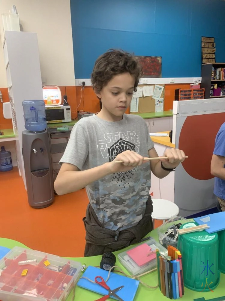 10yo had a cold on the second last Scitech lesson so I had to get JJ to stay home with him while I took 14yo. The task for that one was to work in a group make a Rube Goldberg machine. Half the group would work on half the machine and the other group would work on the other half. Inspired by a machine in one of the examples to give a dog a treat (called the “good boy machine”), they decided to make a “bad boy” machine which would slap 14yo (who volunteered to be on the receiving end).