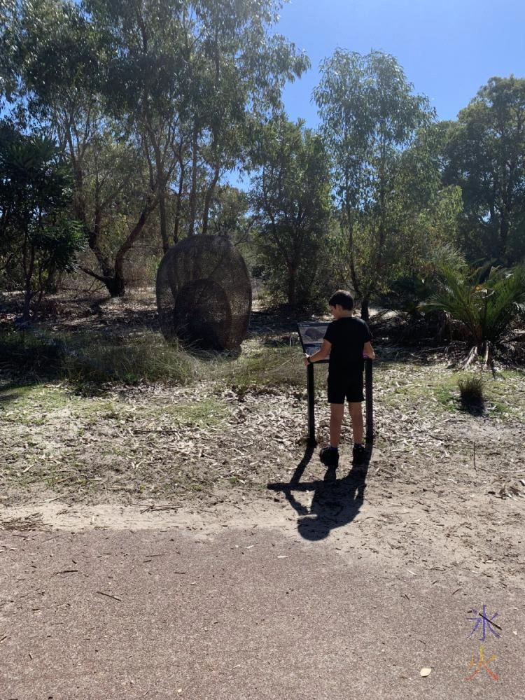 Think the hard-to-read-in-screenie scale said 50m. On the way back to the car we detoured through a sculpture park that we’d seen on the way up but decided to do on the way back that had some signs describing the history of the area and significance to Aboriginal people.