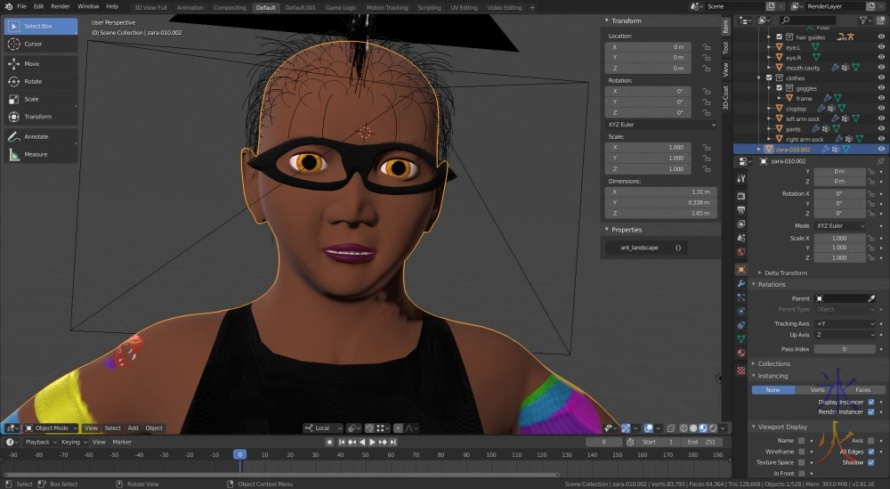 posted on: Friday, 31 January 2020 @ 10:14pm inI thought I was pretty much done with Zara aside from wardrobe (which I can build out as I proceed through scripts) when I remembered that the goggles are an essential piece of kit as she’s blind in the light without them.