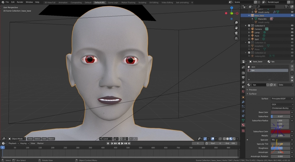 Then I switched out the default shaders for the new default shaders, using the same procedural thing I bought for Zara’s eyes and changing them to red (because all my bases have red eyes) and simplifying the skin shader. Here’s the new super basic skin: