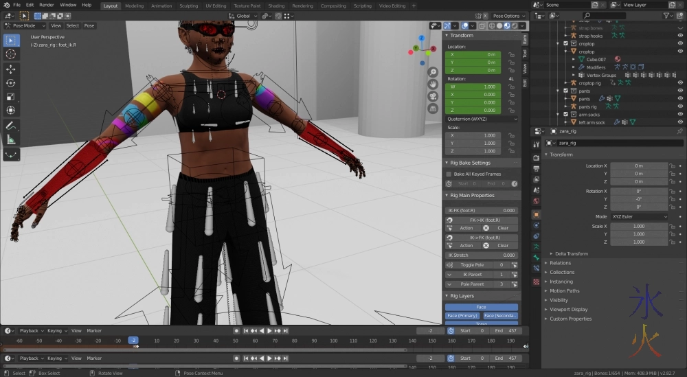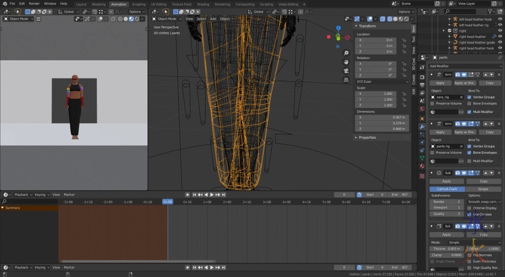 It started out surprisingly well, with some minor having to switch into wireframe mode to see what the bones were doing as I was struggling to grab the correct ones to unglitch the pants and switching the bone directions when it entered my thick skull that I could also rotate the bones to affect the shape of the pants and the bones pointing down was easier on my meagre brain.