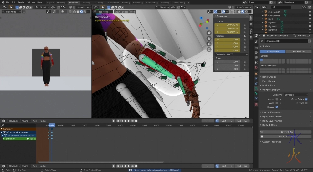 I did find out that lattices actually work better for the arm socks so I guess it’s just figuring out what to use where and when. Because why test one thing at a time when you can completely confuse the absolute hell out of yourself and test several things at once, so as well as testing bone envelopes on clothes, I’m testing how many bones I need on the lattices for the arm guards. The left one shown above has got a ridiculous setup with two bones down each side of the arm and five on the top and bottom. The other arm is going to test whether two on each side and two stop and bottom is better or worse, if they’re both as bad as each other another one I’m going to build out tomorrow as got five bones on all sides.