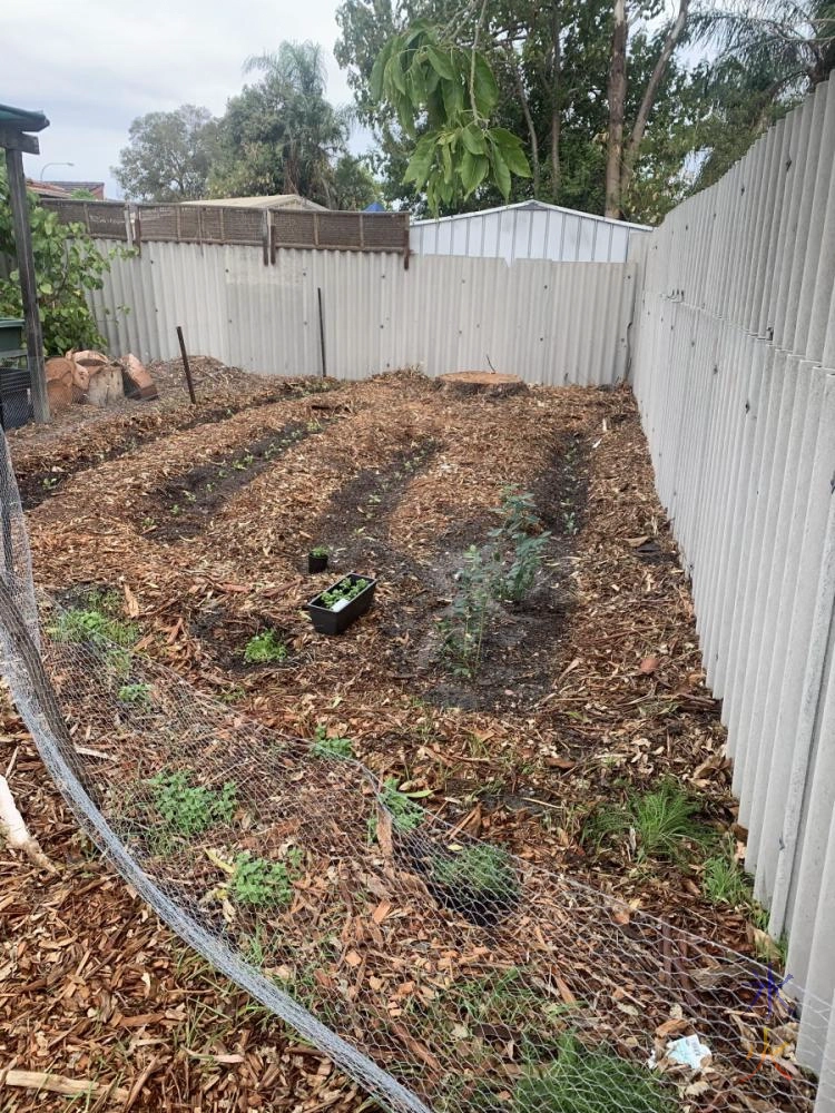 Then we got the vege patch up and running. There used to just be a rectangular patch up the back under the widowmaker, but J has since expanded to the fence and slightly past its original boundaries and that area now gets a lot of sun. For reference the original vege patch in this area occupied roughly the area of the three trenches closest to the boundary fence. Think they took turns digging and planting.