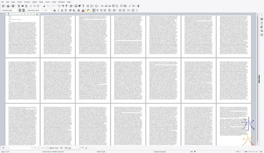 The screenshot above is the last 21 pages I have to transfer into the Drupal outliner that I brewed up specifically for that purpose. It was originally 200+ pages and is a sql file dumped from a mediawiki instance which helpfully added spaces after a lot of punctuation that shouldn’t have had spaces around it (such as dashes and apostrophes), stripped out all carriage returns and converted everything to lower case. I’m not sure why it did that, probably something I did or didn’t do when executing the mysqldump to file. I’ve had quite a bit of cleanup work to do and because I’m me I’ve also been rewriting sections as I go (sometimes almost completely so I don’t even use the text chunk I copy/paste in) so it’s been a slow ongoing process.