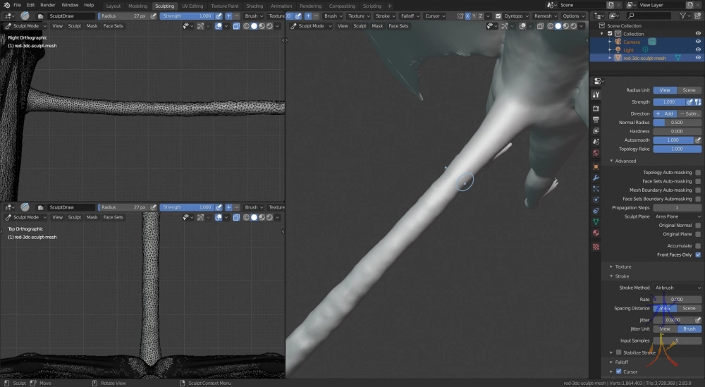 I’ll just keep going over the same areas til the brain accepts the way the sculpt brush works has very little in common with the way Krita brushes work. I’m still getting the little bumps like I was getting in 3dC but they’re at least smoothing out eventually which is something I was really struggling with in 3dC.