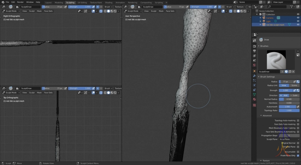 I got there eventually and cleared out the mess, and dropped under 4M which is apparently Blender’s magic number as after it got under 4M I got my buttery smooth brushes back (prior to that an update to 2.83 saw my navigation responsiveness in sculpt mode vastly improve and I was pretty sure the brush had gotten worse but at the time I was well above 4M polys).