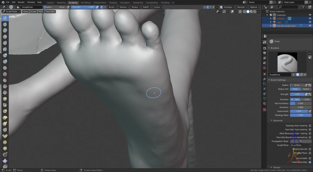 Having the studio lighting option now is incredibly useful as I remember only using the light setup I’d had when I was first playing with dynatopo in Blender a hundred million years ago and it got me into a hell of a lot of trouble (my weird light setup made for weird shadows and whatnot which made me not notice when things were too high or too deep and then I somehow managed to tear the mesh but it was before the viewport refactor which meant switching into edit mode basically made Blender completely unusable).