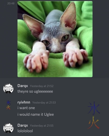 I recently shared a verbal synopsis of hive’s reactions with JJ and he joked about how I should put little slits on the end of everyone’s (as in my characters) fingers. I responded that was very likely to happen as the Dragonkin have retractable claws. JJ just looked at me like o_O and wandered off. I then decided to look up sphynx cats to see just how much trouble I was in for and it looks like potentially quite a lot XD