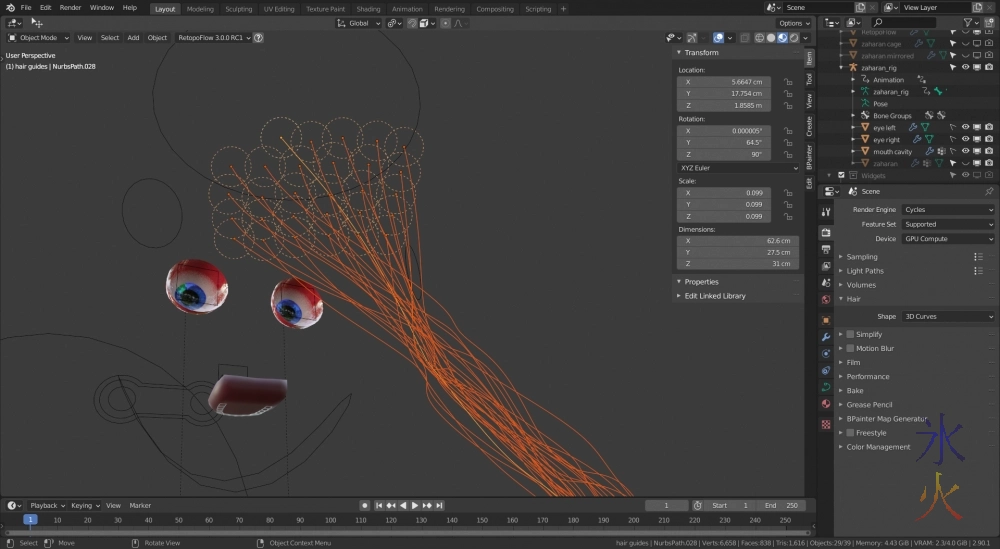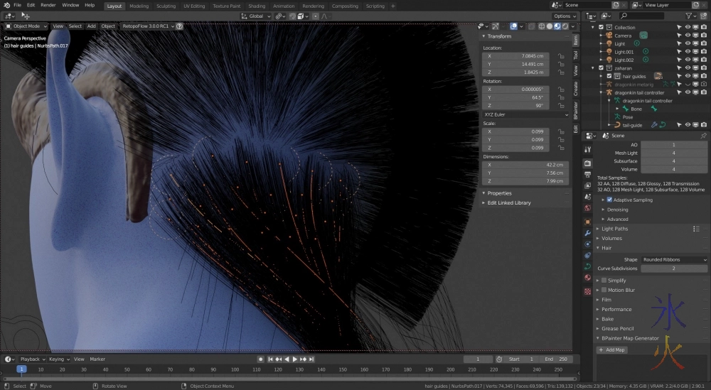 Only vaguely related, I have read about someone using hair particles as oil painting strokes previously but they were asking questions about it and I didn’t see the outcome.Then there was a system update which let me use my gpu for rendering again, yay!