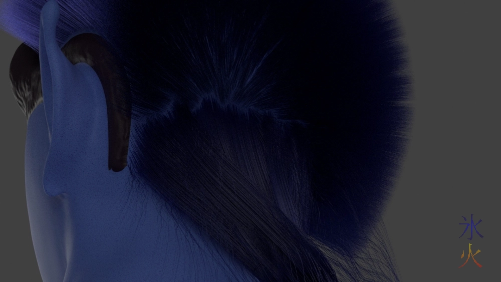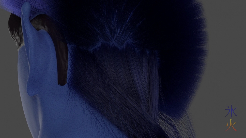 Where I left off, I’d started on the hairs by doing the reasonably easy eyelashes and eyebrows first. Okay eyebrows are pretty easy, just make a density map and then comb. Eyelashes I always have to keep painting hairs on carefully and then combing equally carefully.