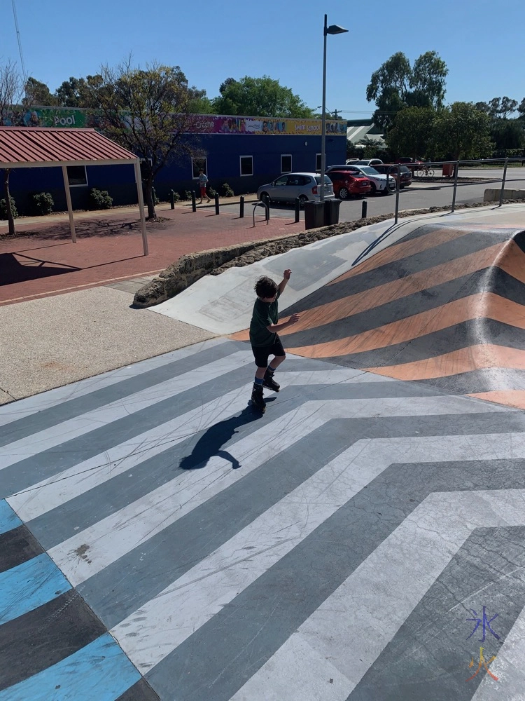 He then bailed out and went to “easy mode” as we call scootering. We bought him a scooter for Christmas and he’d started navigating ramps from the first session and working out how to hop ramps to avoid the thunk which sounds satisfying but destroys your speed, and slowly figuring out how to jump.