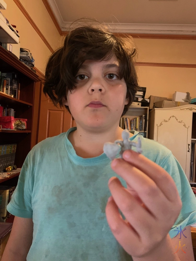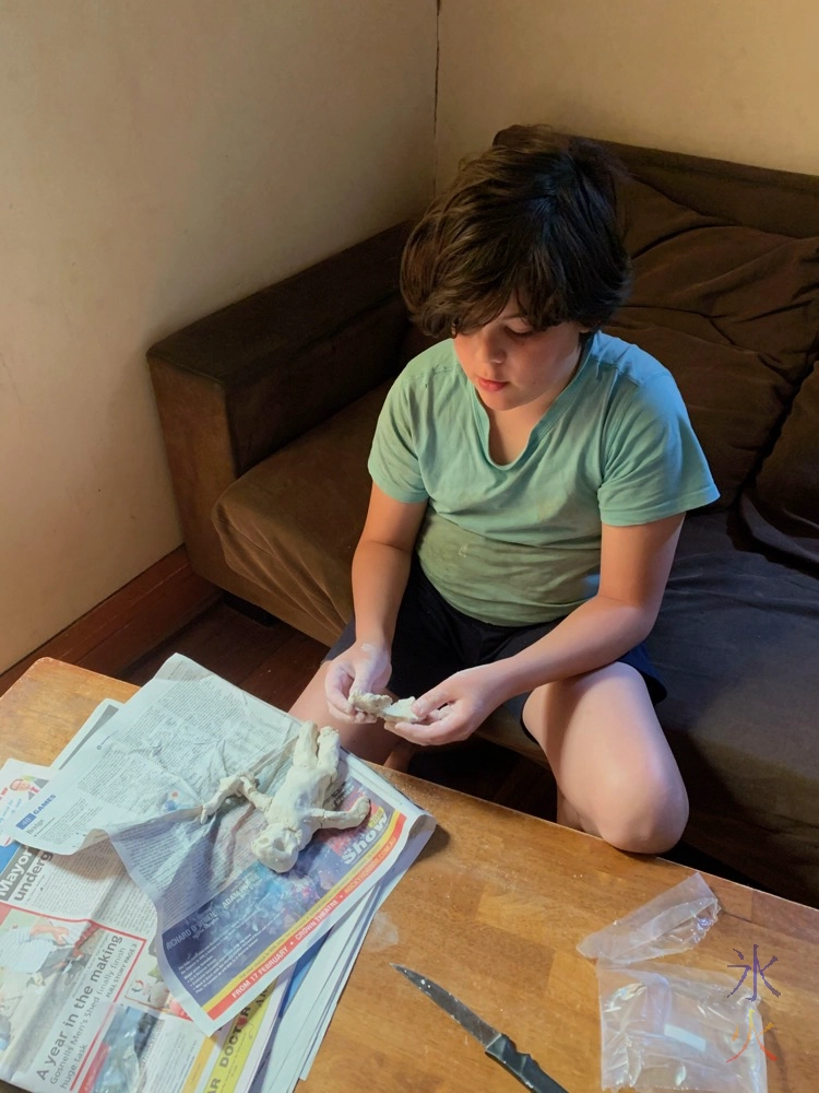 After seeing the little warrior, I asked if he would like some actual clay to model with. Having been watching sculptors on Youtube, 11yo was quite excited at the prospect of using actual clay and made a bigger human shape.
