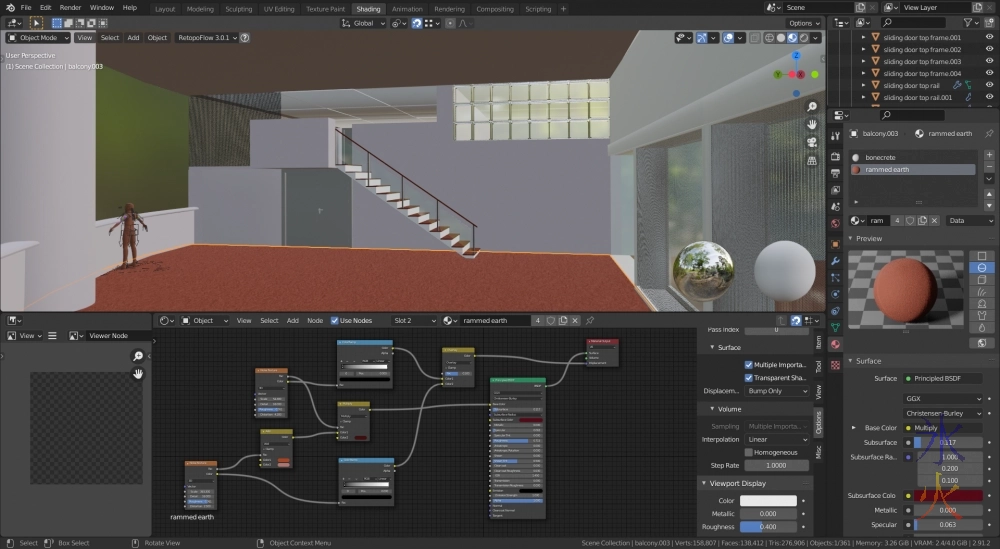 Don’t ask I do a lot of work much later than I should be. Also no I don’t think too much about anything whatchu talken bout.All the floors seem to be rammed earth (the texture of which I really need to do something about as everyone I’ve shown it to keeps calling it carpet) except for the bathroom, toilet and utility rooms which use polished concrete or something similar. I have no idea what the walls are made of, I thought I was making the rammed earth texture for the walls but apparently not XD