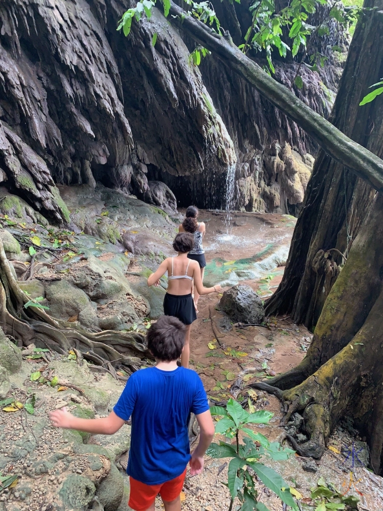 We were continuously cautioned to be careful crossing this tree as not far left was a drop back down to where we had come from (this is the top of the waterfall). 14yo felt slightly attacked as she’s the one that’s usually cavorting over a much, much thinner beam. I assured her that I hadn’t been worried about her in the slightest, it was her younger brother who was prone to rushing and grossly overestimating his abilities that concerned me.
