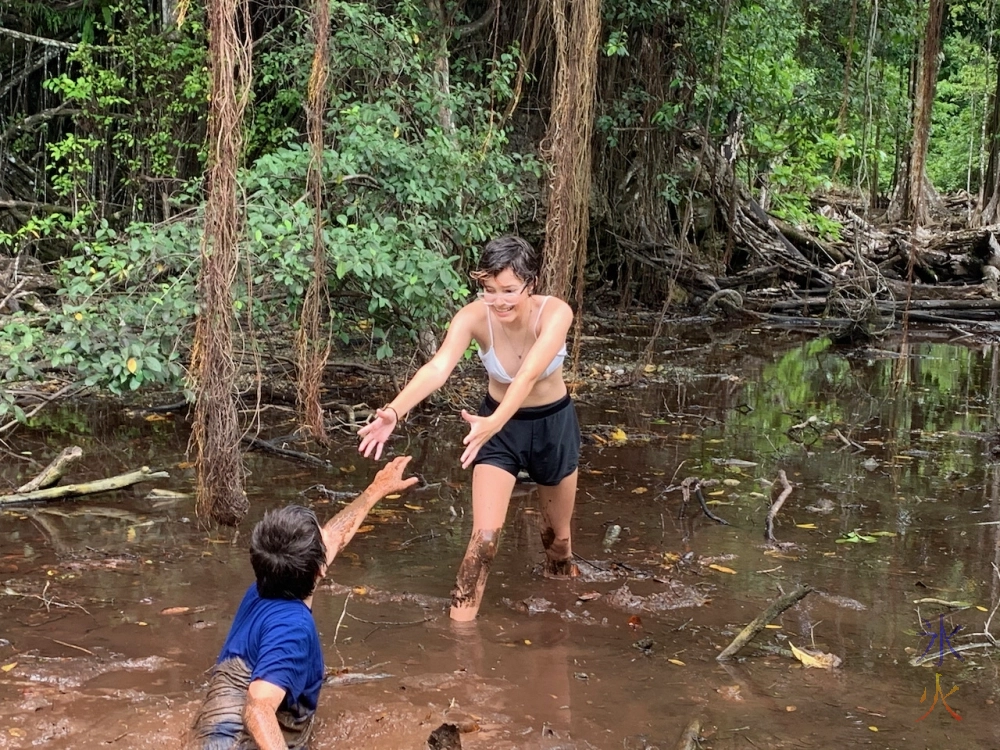 I was wearing shoes as I hadn’t gone for a dip in the waterfall this time round, and think barefoot would have been the better option as far as grip went. I was extra careful over the tree and by the time I caught up they were in the mud flats.
