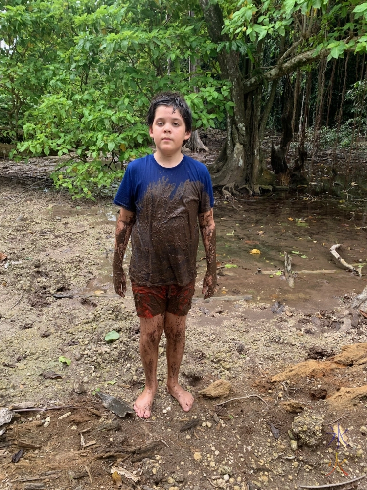 Apparently my parents had commented that 12yo would come back down up to his waist in mud and JJ and responded he’d be up to his chest in mud. Perhaps they should have taken bets. The area up here is the source of the waterfall, the water bubbles up from under the ground. The rest of the source was a bit further up so further up we went.