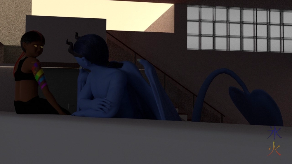 The Flyers really hate it when Zara sits like that (she has her back to a really long drop, I shot this way because the building isn’t finished not because of anything silly like narrative) which is why Za’haran is RIGHT THERE (so he can grab onto her in the unlikely event she unbalances as she has really good balance, or shouldn’t have to dive too far if he misses).