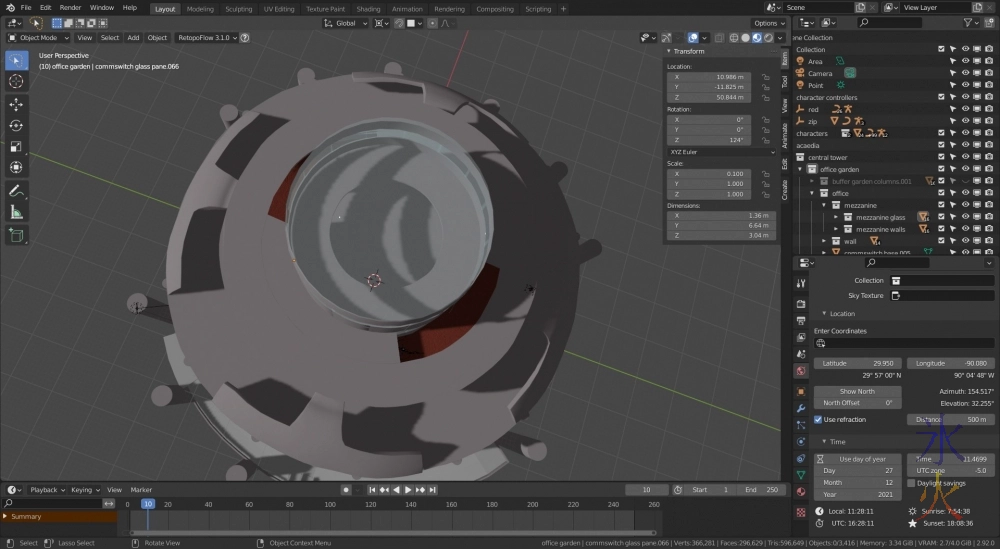 Central tower presented me with a problem when I was testing the sun position add on and the sun didn’t shine into the office as much as I thought it would (which in fairness is hardly surprising given there is a large mezzanene floor and I had the solar panel strip which shaded things). I don’t think the strip was quite as big as I thought it was.