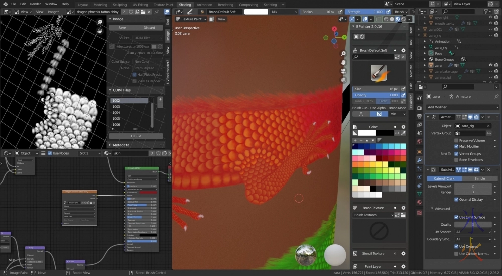 I’m also cursing the failed experiment with relative detail and really wish I’d just started out using brush detail like I did before, because I have to smooth out a lot in the arms at the moment.