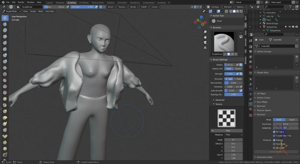 So now I can just adjust the fit and work out shaders and then make the top. Which I started sculpting from a cube in shape.