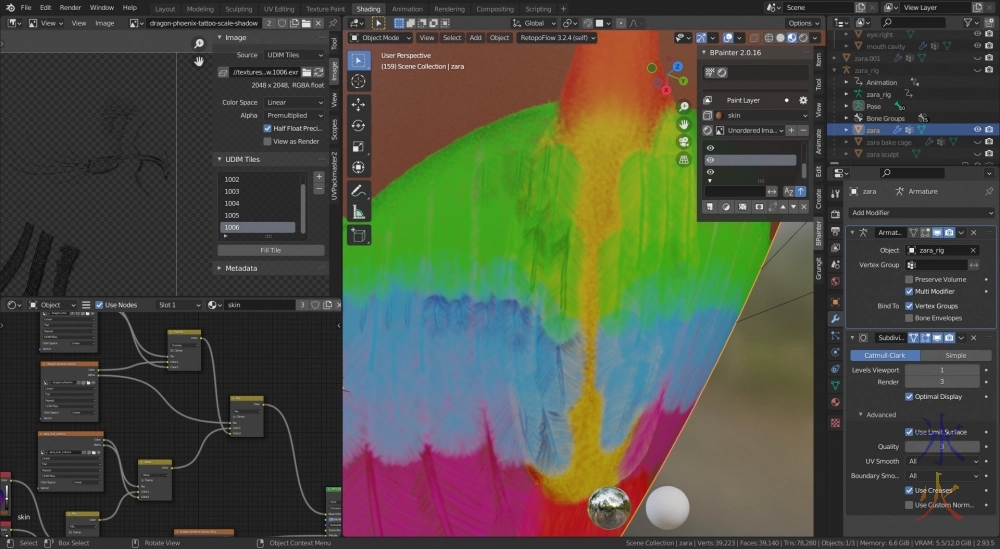 - BPainter: I find painting directly onto the model is so much easier than wrangling uv maps and painting in an external app. Bpainter doesn’t have the comprehensive brushkit and tools of 2d painting apps but it’s a much nicer interface for Texture Paint (which it is layered on top of so there is the problem of Blender’s Texture Paint to contend with, but that will probably get fixed at some point)
