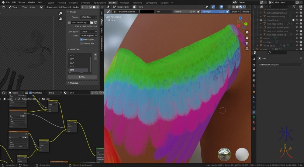 Some progress finally happened on Zara’s tattoo as I think I found all of the green feathers.