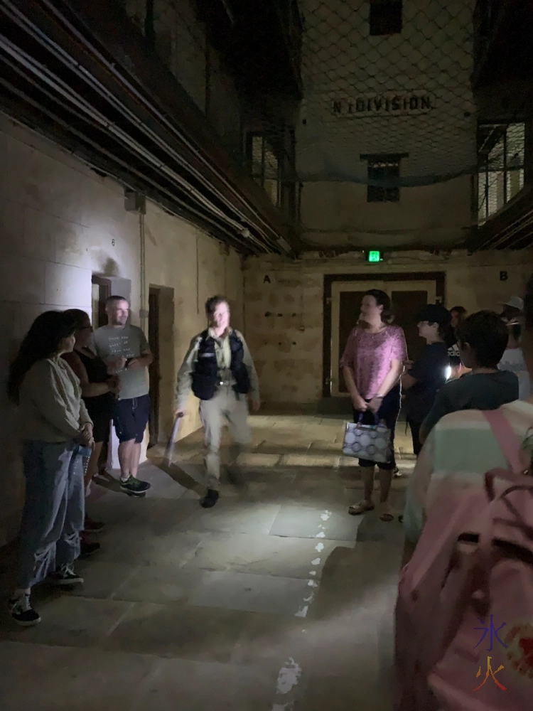It was relatively dark inside the prison and the tour was peppered with actors playing ghosts or staff that would have been active when the prison was active. One of the first ones we encountered was a guard yelling at us to stop before we headed straight into a riot which was a “rookie mistake”. Each one gave a history of one of the prisoners or an event that occured in the prison, or in the case of one of them, the idea behind the design of the solitary cells and that the one in the first position was the one people were put in before hanging.