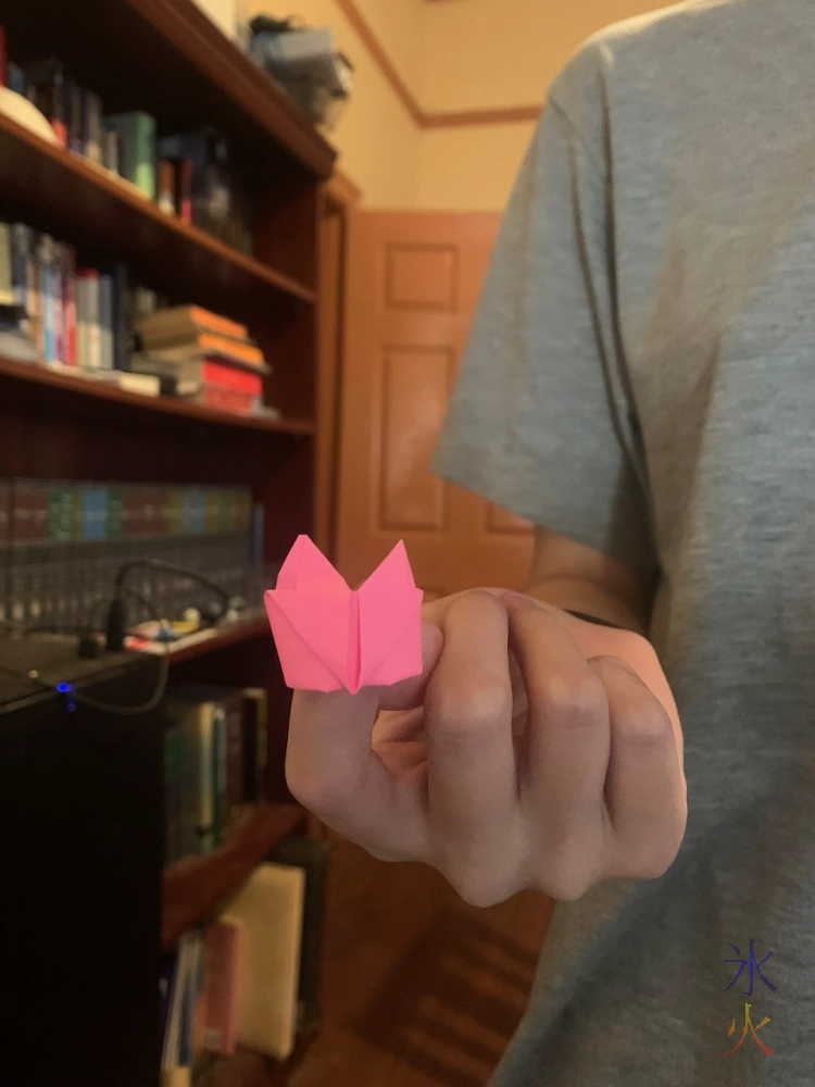 15yo did some origami, making a cute little heart ring.