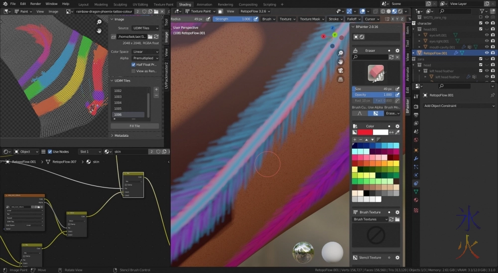 I also need to decide whether I’m going to do the crest as part of the default base or not. Currently I’m inclining towards yes as I am pretty sure I know enough to alter parameters for large crests and smaller ones (most of the Avians have got needle feather crests but some have full feather ones).