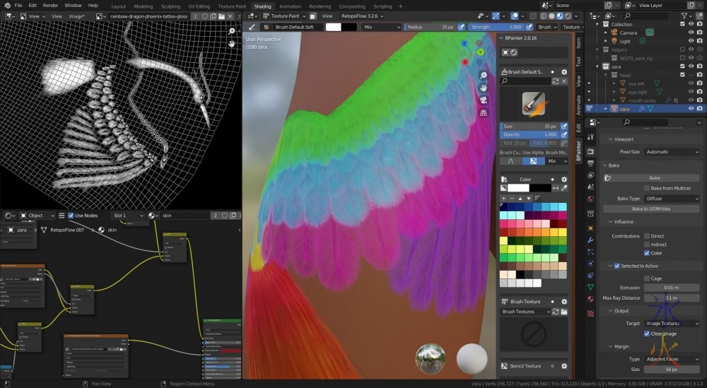 Next thing will be the tail and after that I think I will actually try putting feathers on the base model and seeing how that goes as everything should theoretically be fine as long as they don’t have to use the modifier stack for anything.
