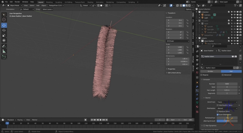 For the Avian base model I’m currently trying to make a particle feather that meets my expectations. This is the start.