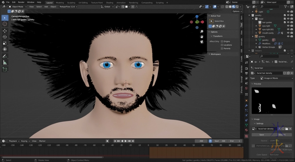 That will be an experiment for another time and another model as I was just procrastinating grooming the beard because I really loathe Particle Edit.