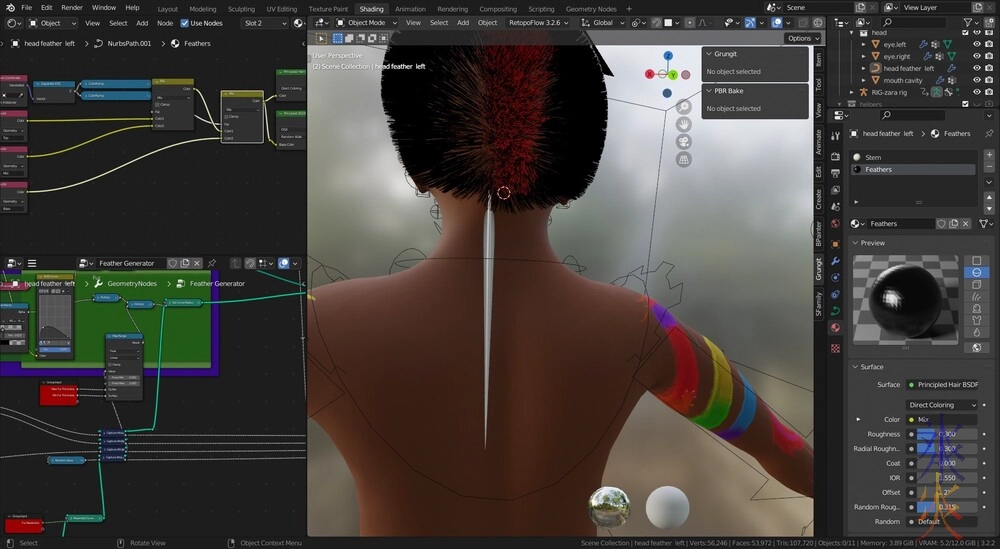 I started trying to use the Feather Generator that I got to make Zara’s head feathers. The first problem I encountered was there didn’t seem to be a setting to adjust the vanes.