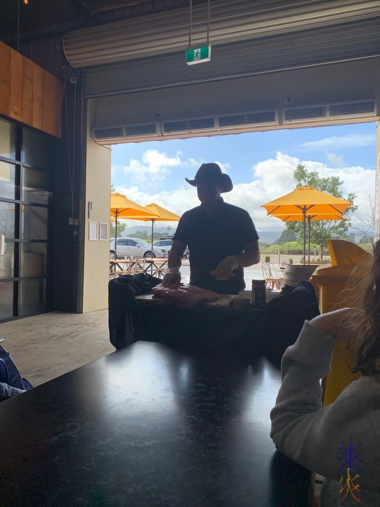 The barbeque was American style rather than Australian style so the first lesson we got was on the difference which mostly seemed to involve smoking in a big metal box after being slathered in marinade, and a demonstration of how the meat was cut.