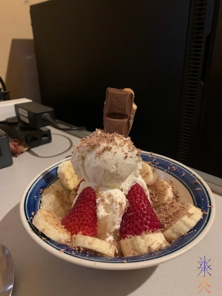 At home, 13yo continued to experiment with dessert presentation as resources allowed.