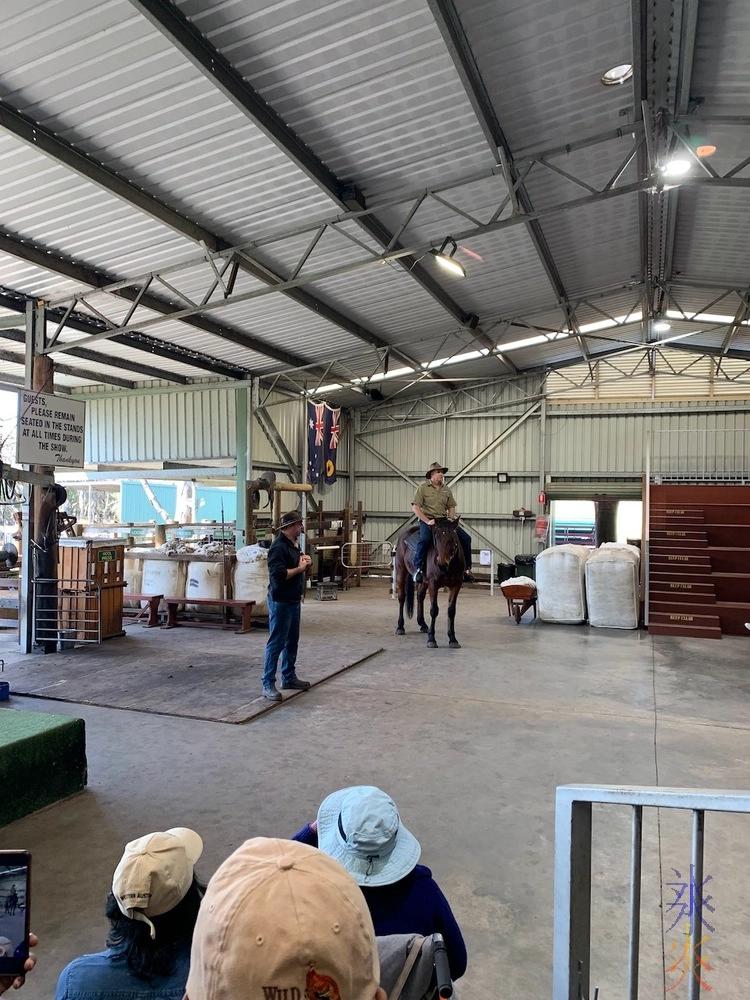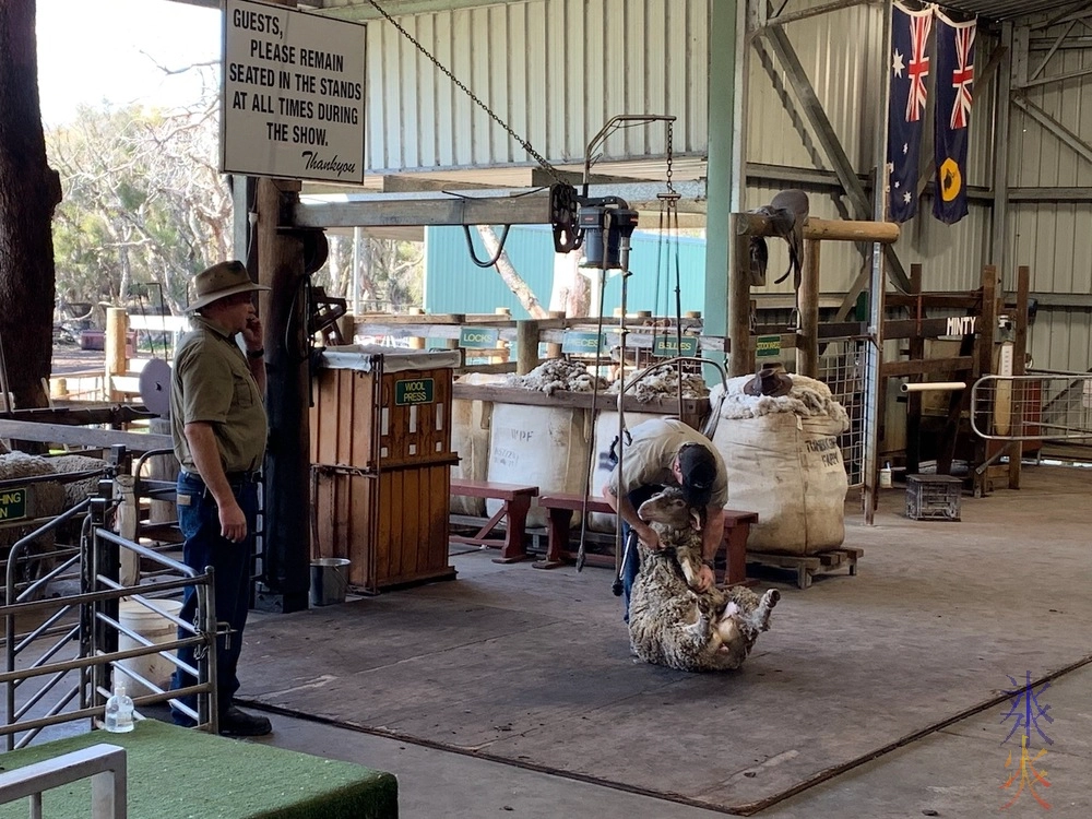 We watched a demonstration of herding using horse and dogs followed by sheep shearing and whip cracking, and historical explanations of how they used to shear sheep with the oldschool shears vs how it’s done now with a sling to take most of the shearer’s weight to save their backs and some very large clippers which makes the shearing process itself a lot quicker.