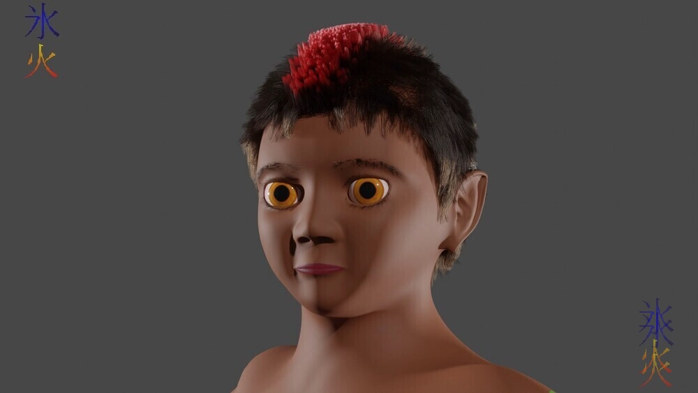 The cool thing with the new hair system is that I was able to just draw everything straight on rather than messing around with texture maps and completely out of control child hairs.