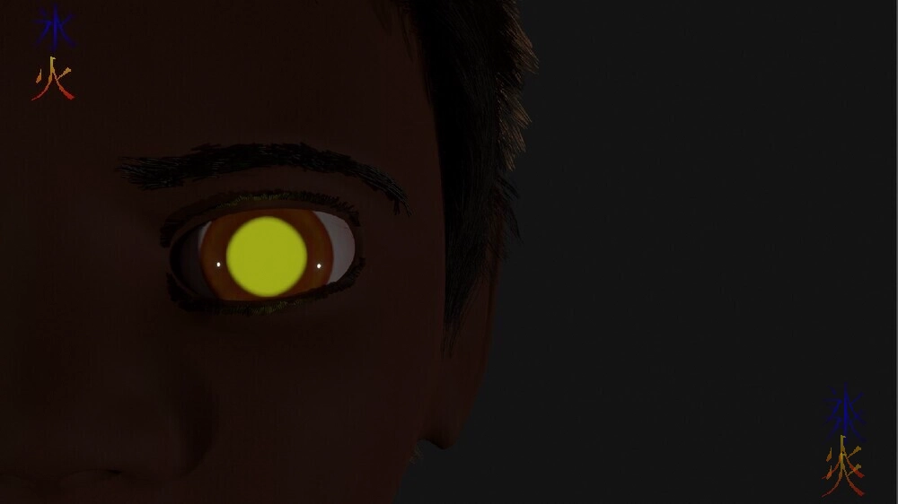 And I also did the glowy eyes thing while I was about it. “Cheated” with an Emission node again.