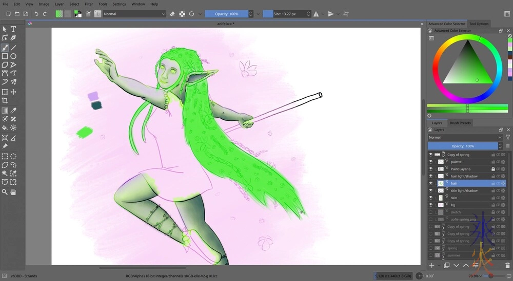 On Monday I tried working on Aoife again and got the skin somewhat workable. Then spent a lot of time trying to work out how I was going to do the hair. I did try for either a green or pink undertone to the other coloured hair and could not get anything to look good. So currently have decided it’s green with pink shimmer seeing as we have a shiny reflecting the opposite colour thing happening.