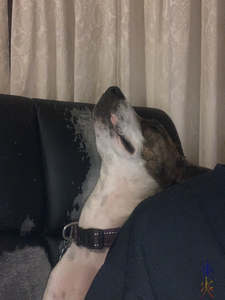 so I’m precariously perched on the edge of the seat and I can’t back up enough to compensate because her bed is an old single mattress that can’t move any further from where it is.