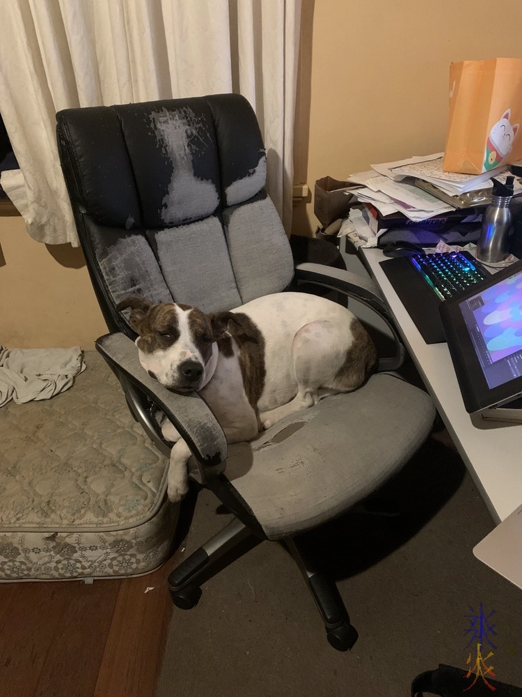 She loves curling up behind me on my chair. The problem is she takes up this much space