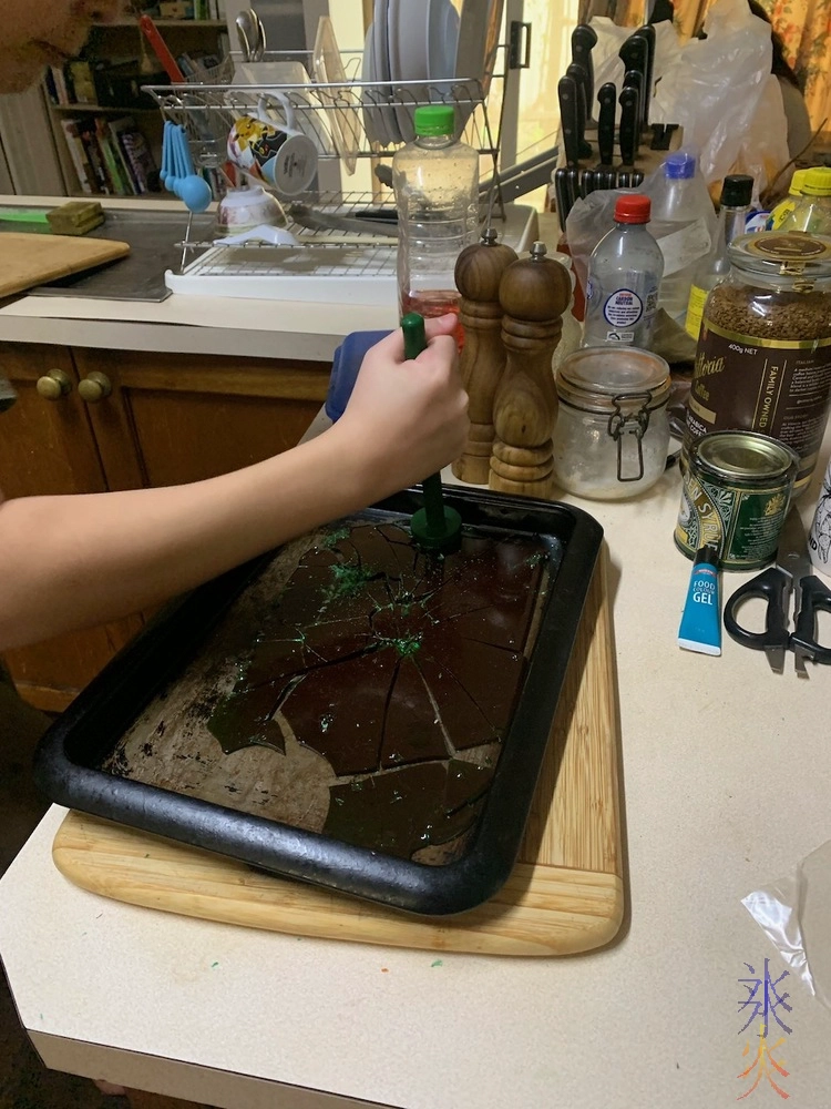 The other involved using a mould, which in this case was a metal cup as either he hadn’t ordered moulds or they hadn’t arrived. His first attempt was a bit lumpy as he had trouble getting it out, the second he’d mastered the technique and it was a lot smoother.