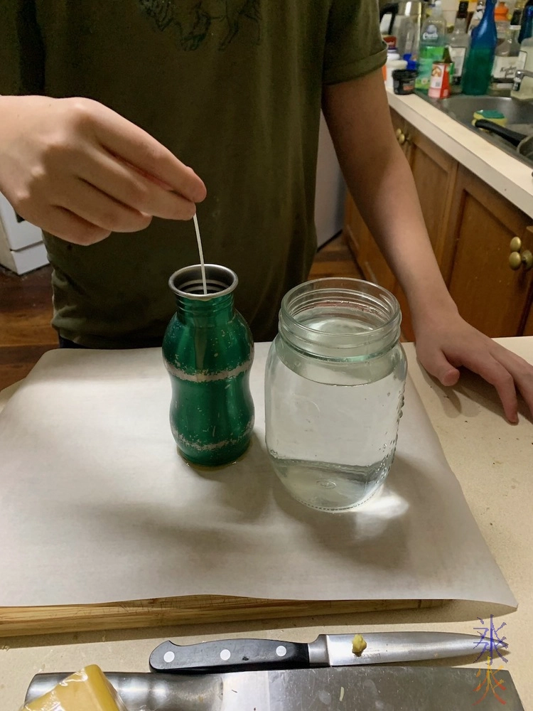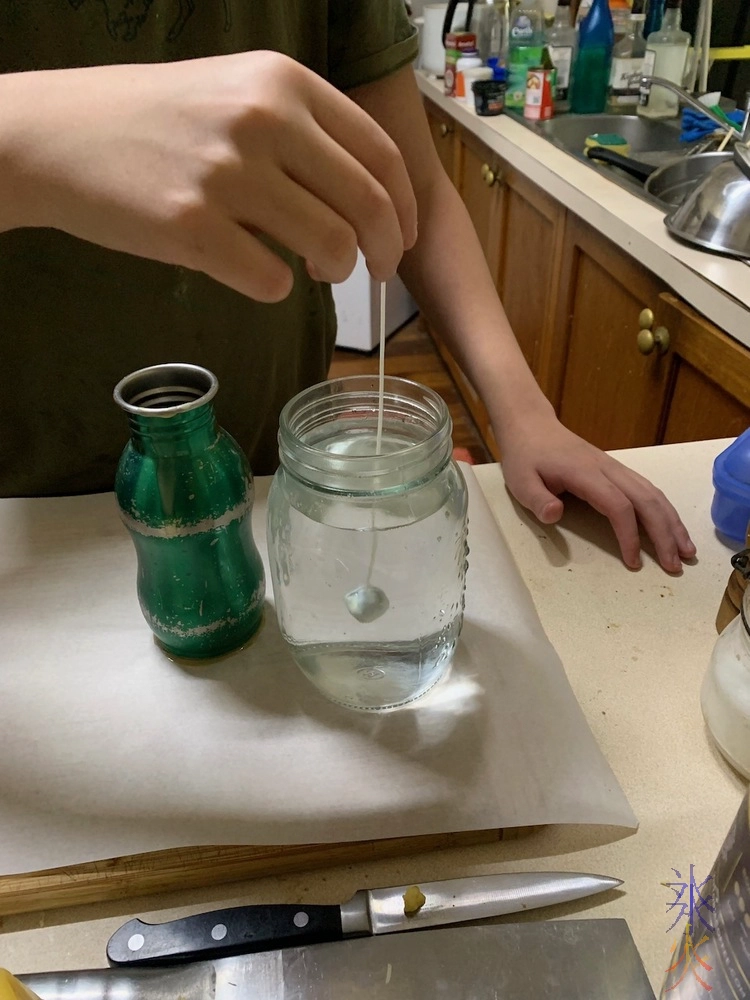 One involved alternating dipping the wick into the hot wax and then into some cold water.