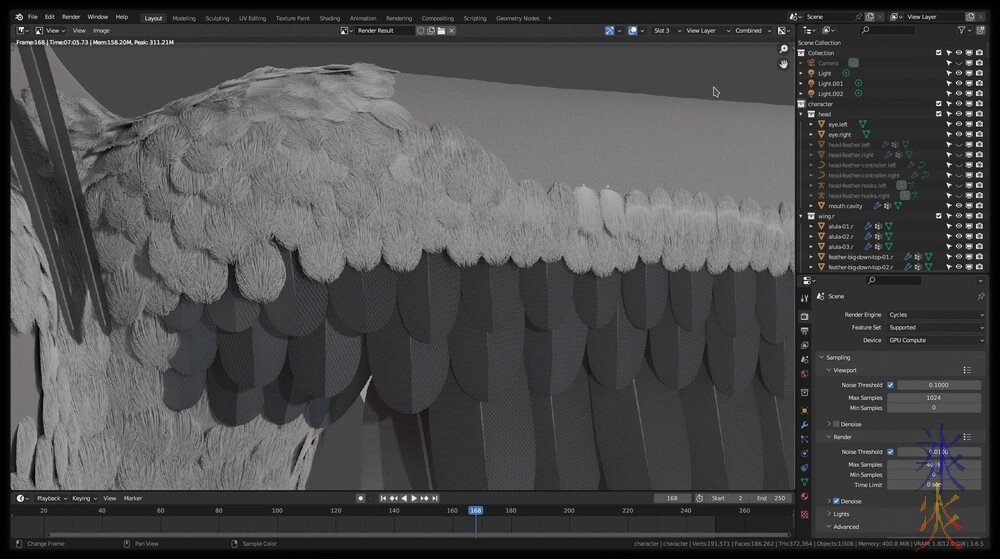 And then there was a major version update and suddenly it rendered a lot faster and the polyfeather texture went back to how it was supposed to be and everything just looked a lot nicer in general.